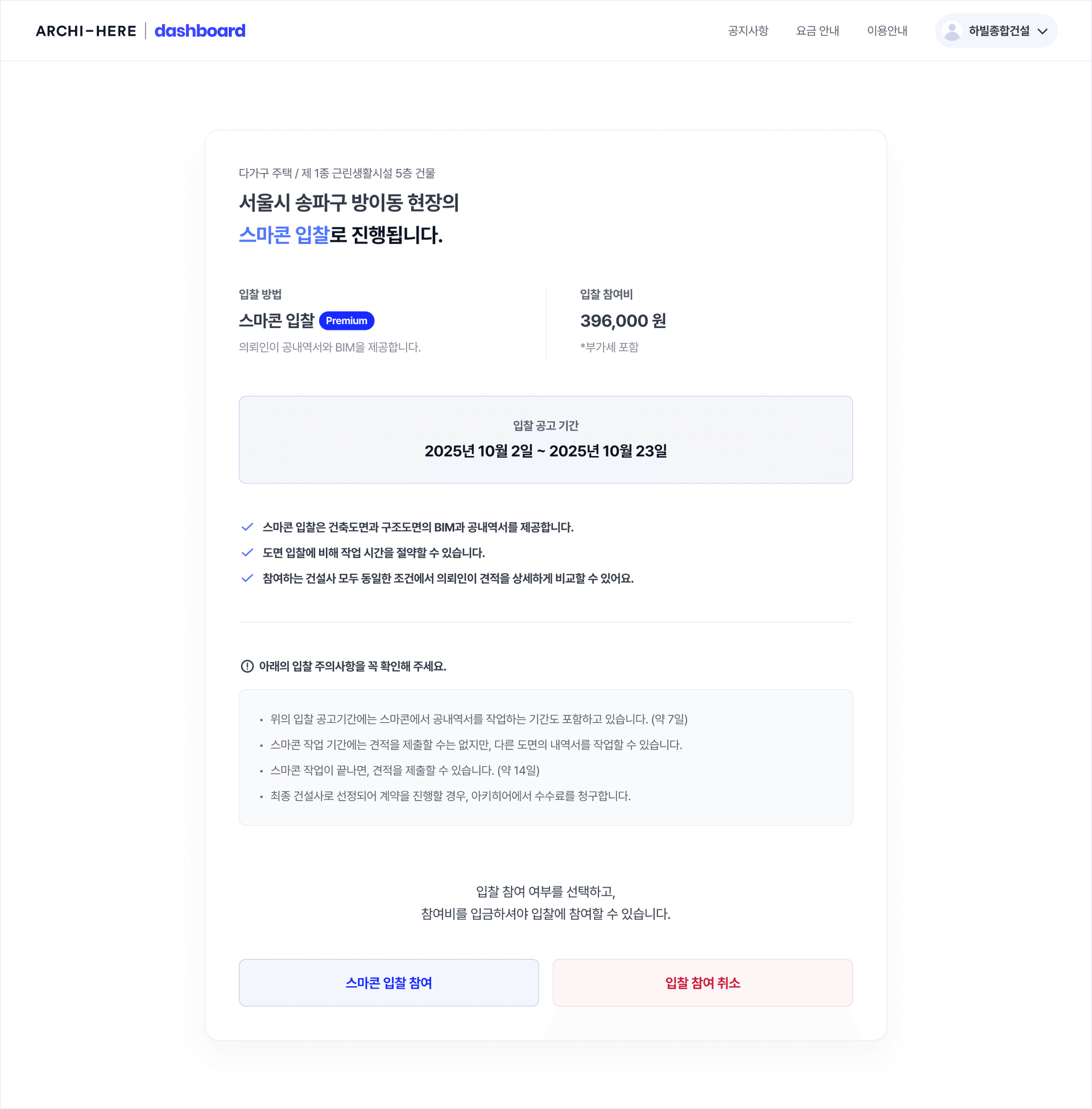 - 입찰 참여비는 아키히어 입찰 시스템 이용료입니다.