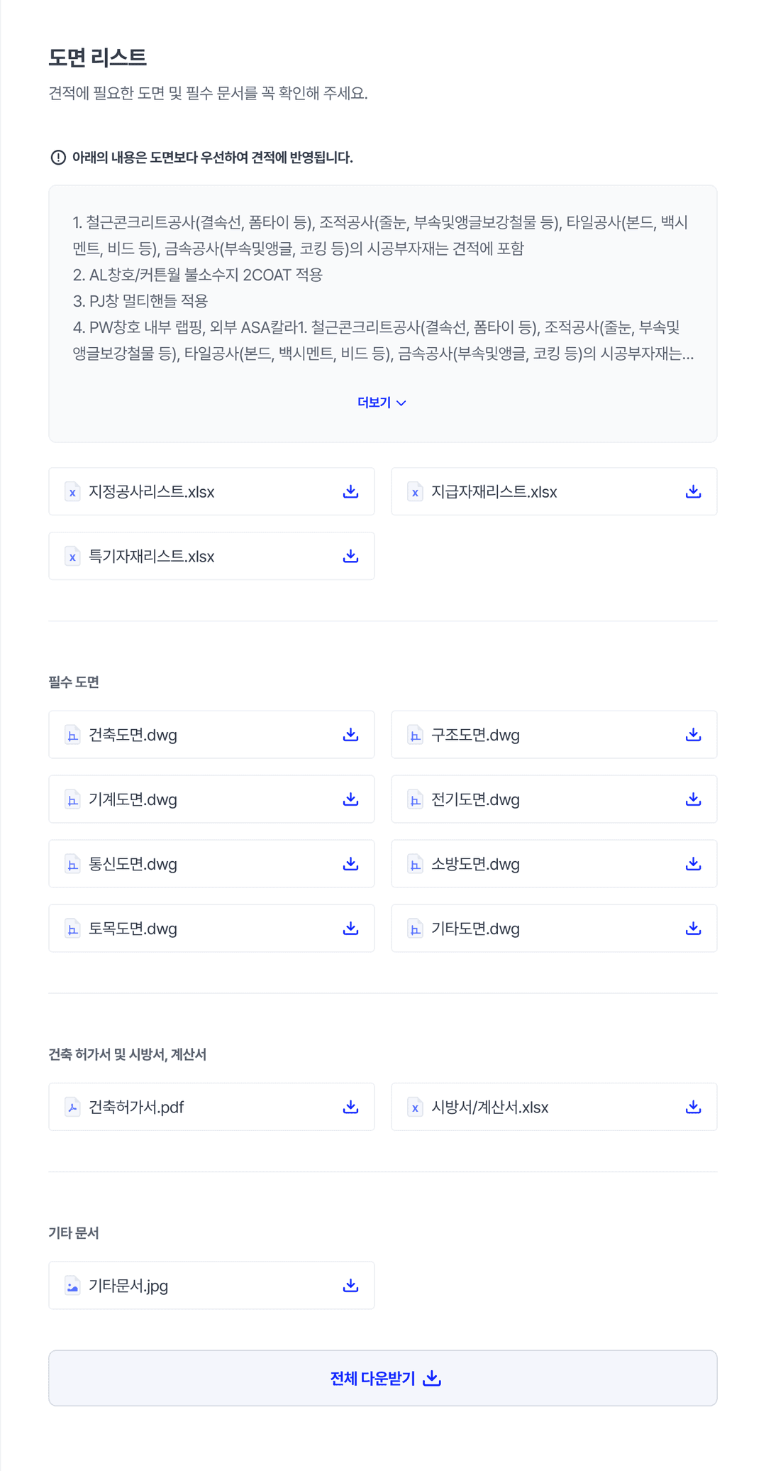 도면을 확인하고 내역서를 작성하여 견적을 제출합니다.