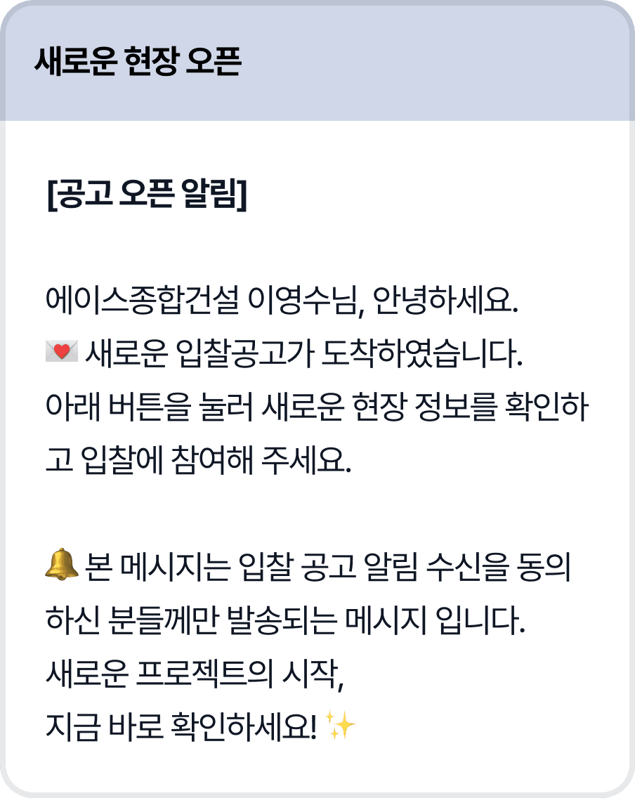 불필요한 영업과 네고를 하지 않아도 공사를 수주할 수 있는 입찰환경을 제공합니다.