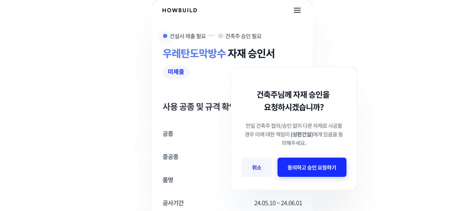 계약에 따라 승인이 필요한 자재와 시공 계획서를 편하게 관리할 수 있어요