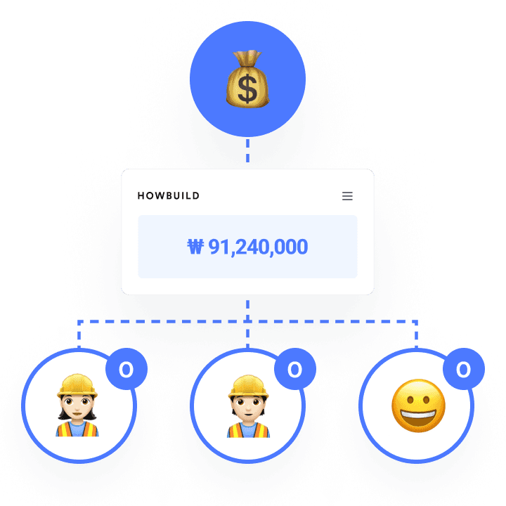 하우빌드는 에스크로 시스템으로 건축주에게 받은 공사 대금을 투명하게 관리합니다. 협력사는 기성금 걱정 없이 마음 편히 일할 수 있고, 결과적으로 안정적인 공사 진행으로 이어집니다.
